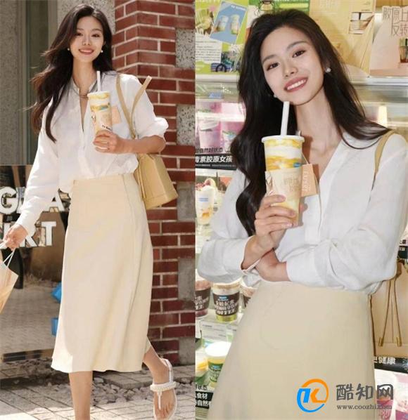 一、白衬衫配半身裙相信没有人会拒绝一件百搭的白衬衫,简约的设计及轮廓不会有挑剔年龄与身材的问题,匹配半身裙,可以显得清爽温柔。白衬衫最出彩的特点就是充满明亮感,可以对气色有一定的修饰作用,特别是肤色不够清透的女性,在日常穿搭时可以多多使用白色上衣。而与黑色半身裙的结合,是永远不会出错的搭配,颜色融合得既层次分明,但又不失和谐之感,可以实现对于知性气质的完美塑造。一般以白色衬衫为上装的造型,都不会再采用一些特别潮流的元素,而基础色半身裙的应用,也是为了保持简约大气的造型效果。这件浅杏色的半身裙就有着比较温柔的气息,不论多大年纪的女性穿着,都不会有丝毫的违和感,而像图中使用扎衣角的话,还能演绎出更修长的比例。但如果上下装配色的对比不明显的话,就算是将衣角扎进裙腰中,也不会将腰线凸显很明显,这时不如借鉴图中的穿搭,加入一条腰带,用深浅撞色的方式,更轻松的拉长比例,皮革的材质还可以显得造型更有质感、更立体有型。搭配最重要的就是协调度,这来源于不同服装的配色与设计,但好在白色衬衫是搭配起来很省心的单品,即使在造型中增添印花元素,也依旧能发挥出清爽的气氛。比如上图这身穿搭中使用的半身裙,底色选择了白色,可以与衬衫进行视觉上的呼应,而细致的蓝色图案又展现出几分古典又优雅的韵味,而在纯色衬衫的对应下,整体也依旧很有平衡感。