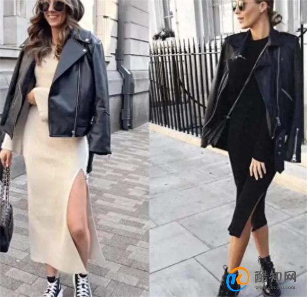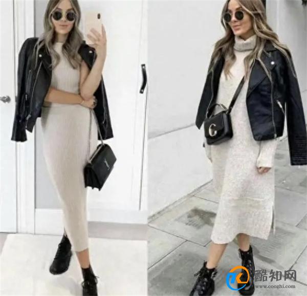 多种搭配方式凸显个性魅力1、搭配飒酷的皮衣外套:修身的毛织连衣裙搭配飒酷的皮衣外套,展现出一种既酷又美的穿搭方式。金属拉链和铆钉的装饰为整体造型增添了一份帅气感,既有撞击出两种风格的两全之美。2、搭配牛仔外套:秋天的毛织连衣裙虽然很温柔,但在寒冷的天气下,单穿可能不够暖和。因此,我们可以选择搭配一件厚实的防风牛仔外套。毛织连衣裙与牛仔外套的搭配,展现出一种休闲摩登的穿搭方式。色彩的巧妙搭配可以表现出更时髦大气的美感。3、搭配西服外套:如果你需要一种既简约又大气的穿搭方式,那么选择一件修身的毛织连衣裙搭配宽松且有一定挺阔度的西服外套将是一个明智的选择。西服外套利落的剪裁,大方、干练的风格,与修身的毛织连衣裙相得益彰,呈现出相互衬托的优雅美感。4、搭配风衣外套:秋天的风衣外套是一种非常百搭的单品,与修身的毛织连衣裙配合,更是魅力十足。通过巧妙的色彩组合,在打造出大气清晰的层次感的同时,也彰显出时尚与个性的双重魅力。5、搭配大衣外套:当温度进一步降低时,为了保暖穿搭,你可以选择毛织连衣裙搭配大气的双面呢外套。双面呢的大衣无论从材质还是款式上都充满着高级感和质感,搭配上柔软的毛织连衣裙,尽显温柔高贵的气质。如果想要突出身材的比例感,还可以在连衣裙上加上一条精致的皮带,时尚又高级。